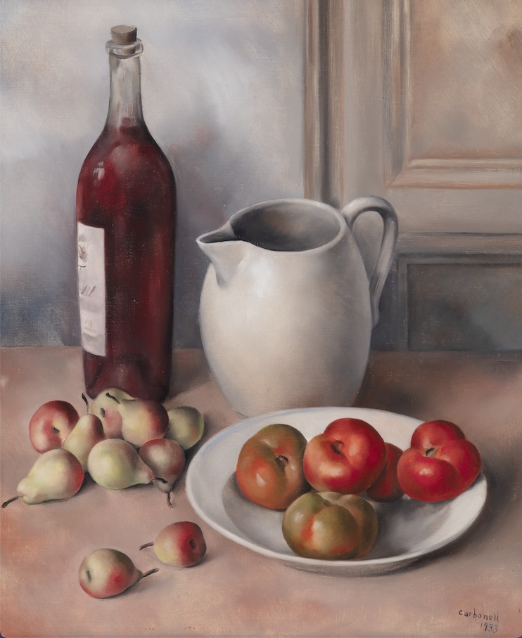 La obra de Carbonell se presenta acompañada por la de artistas de su contexto creativo como Joaquím Sunyer, Joan Miró, Federico García Lorca, Alfred Sisquella, Jaume Sans, Pere Jou o su amigo Pere Armengou. La muestra se estructura en dos ámbitos -el pictórico y el escénico- que dialogan para revelar la complejidad y coherencia de su universo creativo. El recorrido comienza en la Sala Vaixells del Palau de Maricel y culmina en la planta baja del Museu de Maricel, en un itinerario que simboliza el paso del lienzo al escenario, de la imagen a la acción. El primer espacio reúne dibujos y pinturas, junto con documentos, fotografías y publicaciones que sitúan a Carbonell dentro de las corrientes artísticas europeas de entreguerras. Su pintura, que parte del noucentisme mediterrani evoluciona hacia el realismo mágico, un estilo que combina la precisión formal con una atmósfera poética y enigmática. Su producción pictórica conecta con los movimientos europeos de la nueva objetividad y el realismo de entreguerras. Cada obra es una ventana abierta a un mundo interior, lleno de lirismo, equilibrio y silenciosa tensión.
