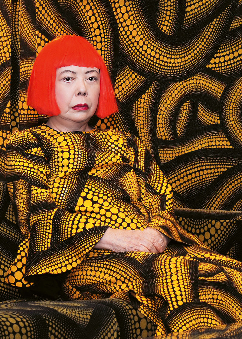 El universo visionario de Yayoi Kusama (1929) ha convertido a la artista japonesa, casi centenaria y aún en activo, en una figura de culto. Repasamos la biografía de la “princesa de los lunares”, con motivo de su retrospectiva en la Fundación Beyeler de Basilea que recorre las más de siete décadas de su prolífica y longeva carrera. Junto con algunas de sus piezas más famosas, se presentan obras tempranas nunca antes vistas en Europa, así como otras de reciente producción y una de sus caleidoscópicas Infinity Mirror Rooms. Yayoi Kusama nació en el seno de una familia de prósperos industriales dedicados al negocio de las semillas de plantas. Hija pequeña de cuatro hermanos, desde muy niña solía ir al campo con un cuaderno bajo el brazo y sentarse entre las violetas, peonías y zinias a dibujarlas. Este entorno no sólo espolearía su imaginación sino que también fue el escenario de sus primeros trastornos mentales. Ella misma ha contado que un día sintió que las flores le hablaban. “Hasta entonces había pensado que sólo los seres humanos tenían el don del habla, así que me sorprendió que las violetas utilizaran palabras. Estaba tan aterrorizada que mis piernas empezaron a temblar.” Aquella fue la primera de una serie de alucinaciones -a las que se refiere como despersonalizaciones- que la atormentaron en la infancia. Ya desde niña demostró un carácter fuerte y tenaz. Cuando su madre le rompía sus dibujos, ella hacía más. Y cuando no podía permitirse comprar materiales artísticos, utilizaba lo que encontraba por casa… [Yayoi Kusama con Yellow Tree/Living Room, en la trienal de Aichi, 2010 © Yayoi Kusama, Cortesía de Ota Fine Arts, Victoria Miro, David Zwirner]